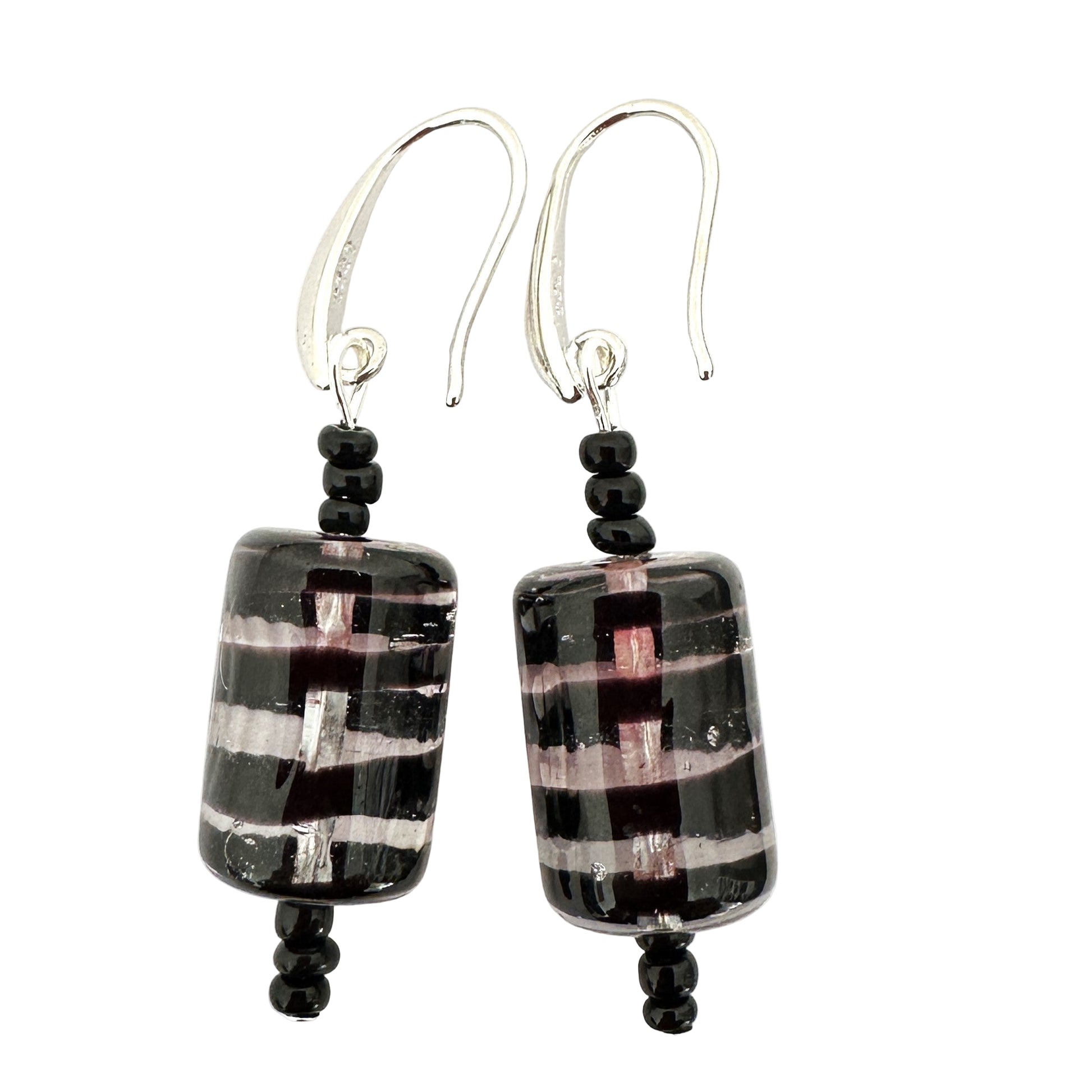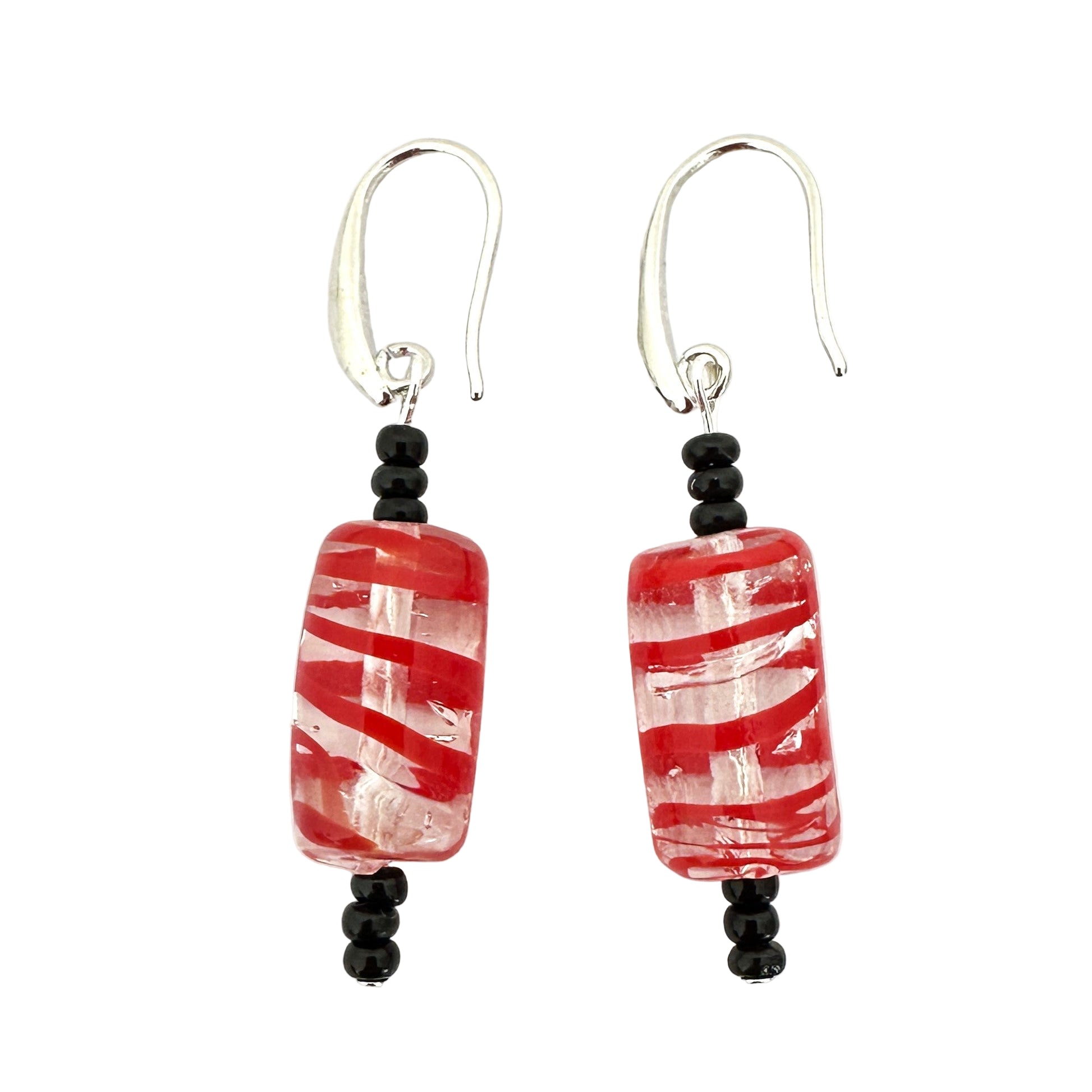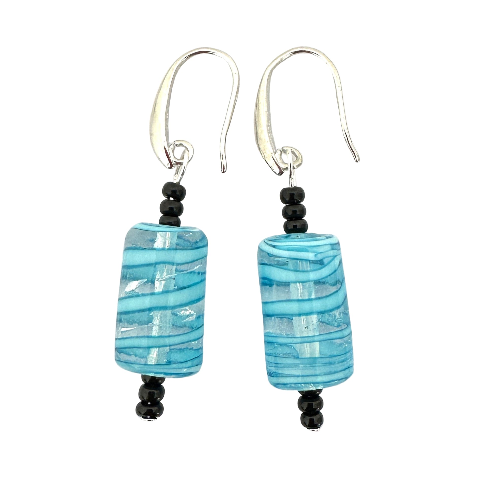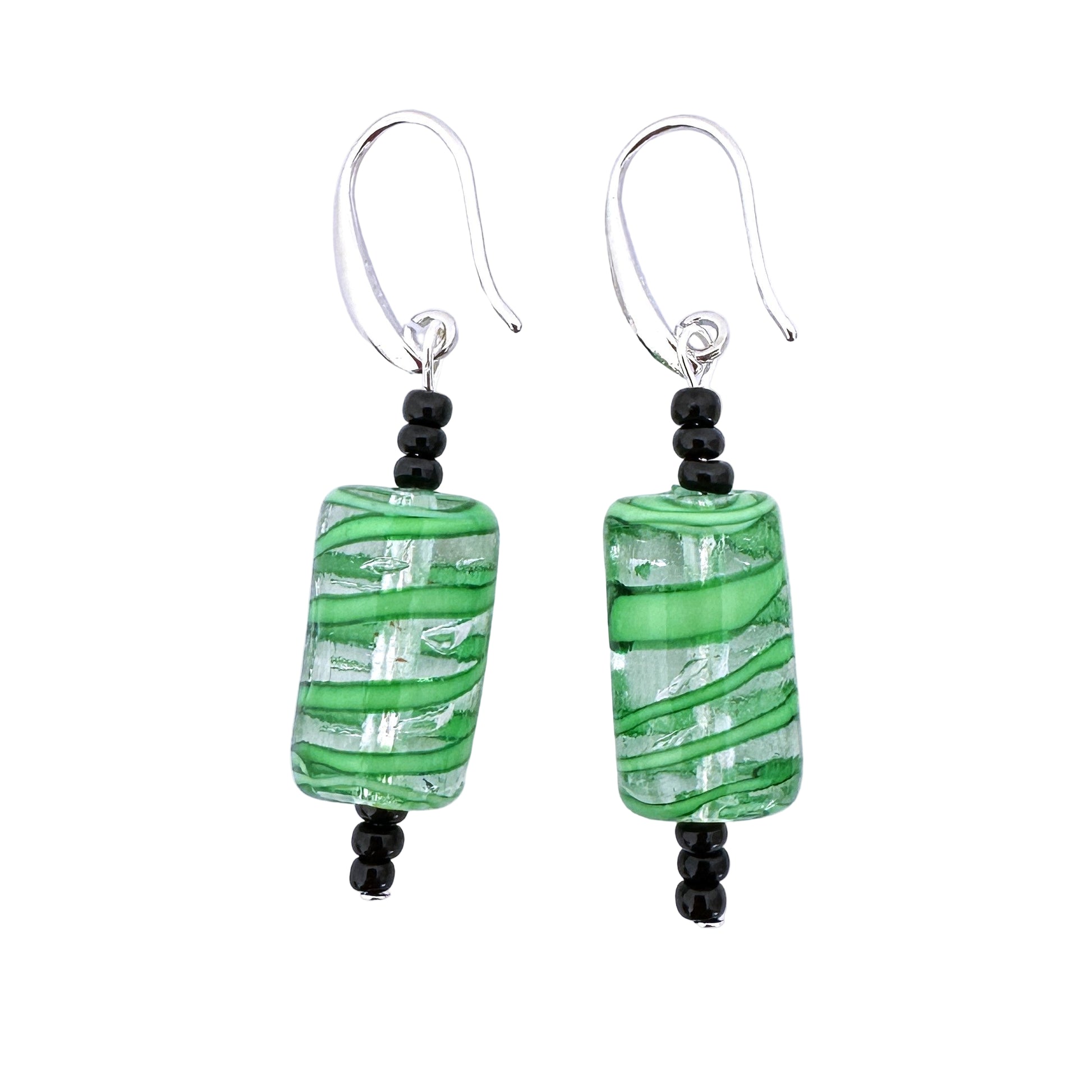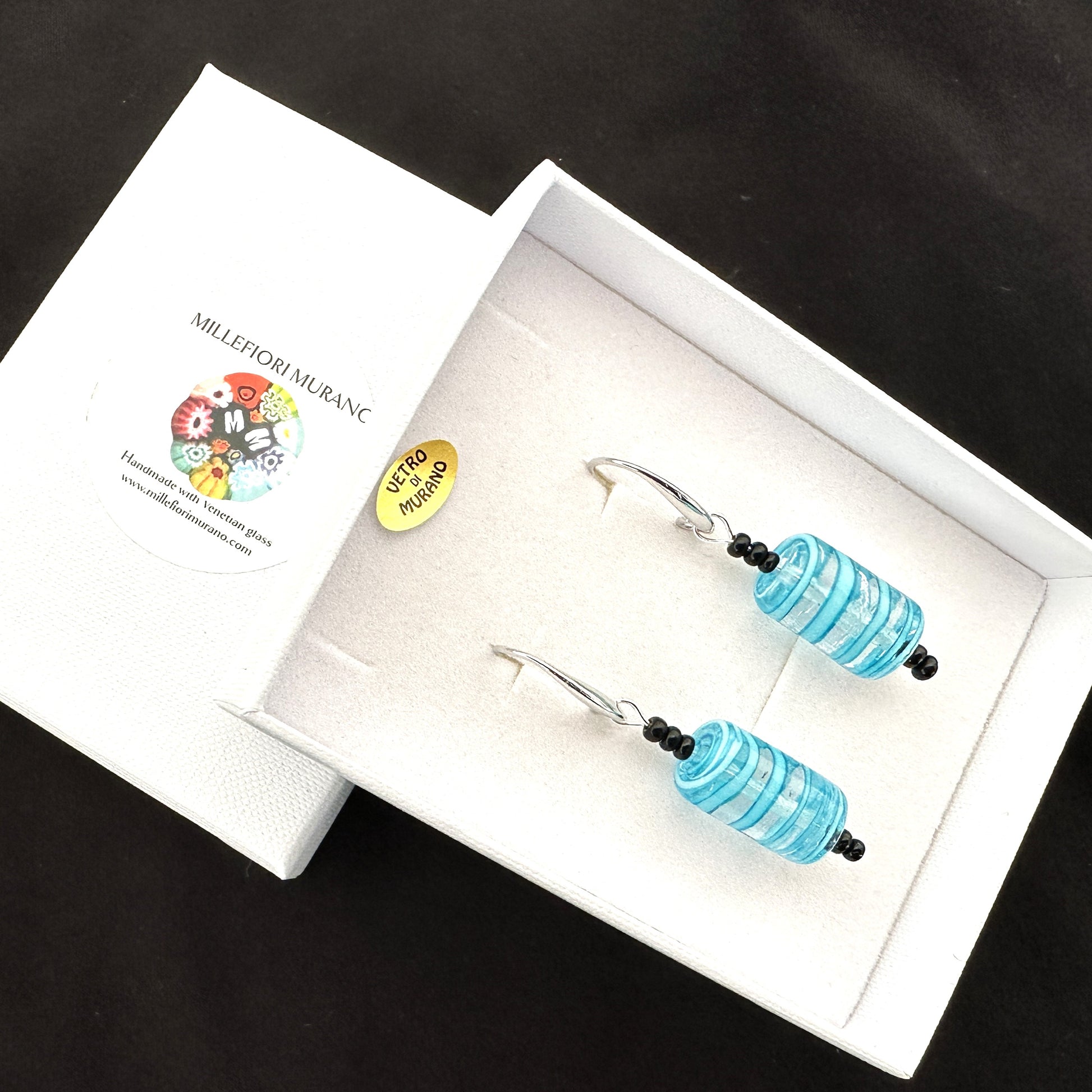 - 16-18mm Ercole Moretti Murano clear glass and colour spiral tube beads with black Murano glass seed beads