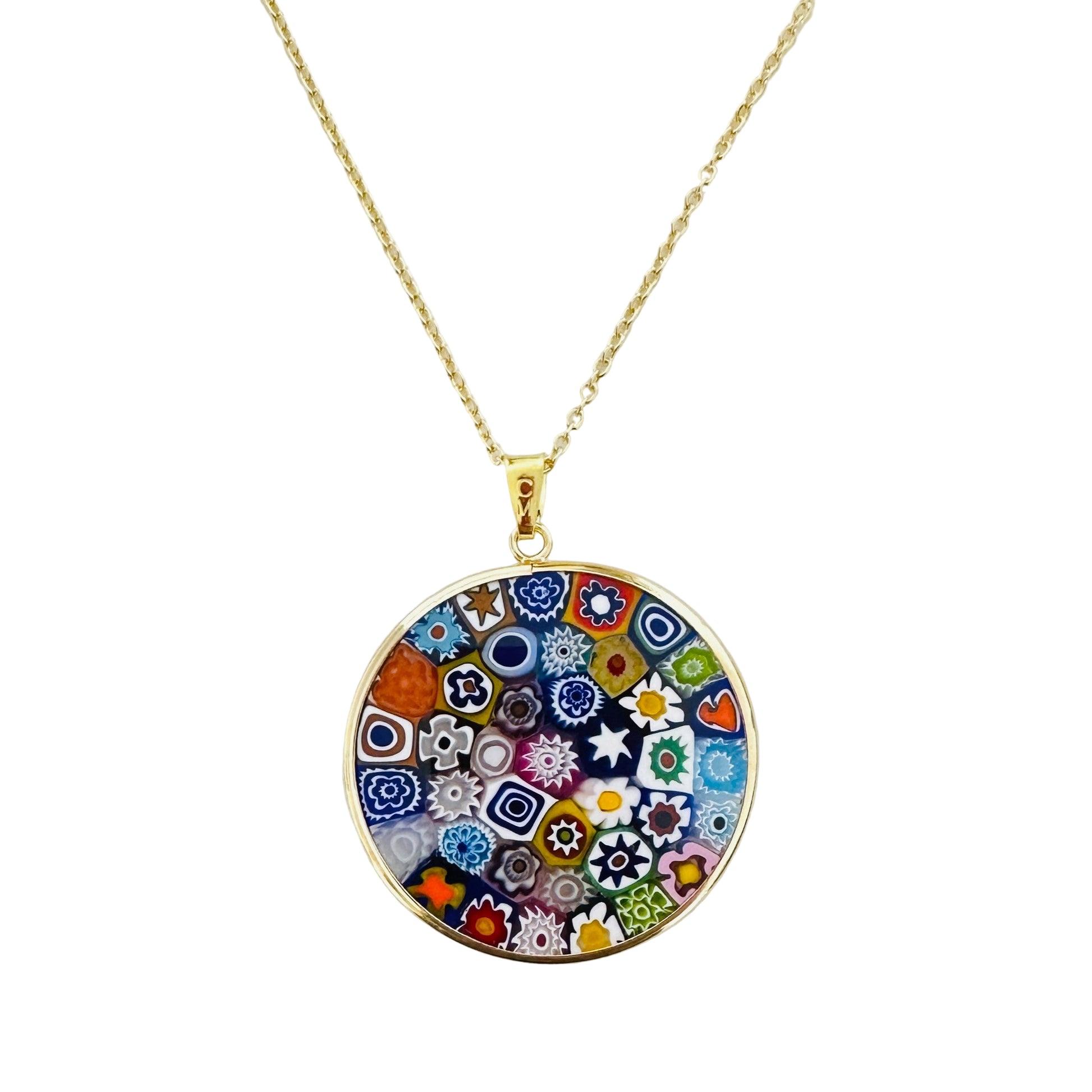 Quintessential Murano fused millefiori pendant finished in gold vermeil