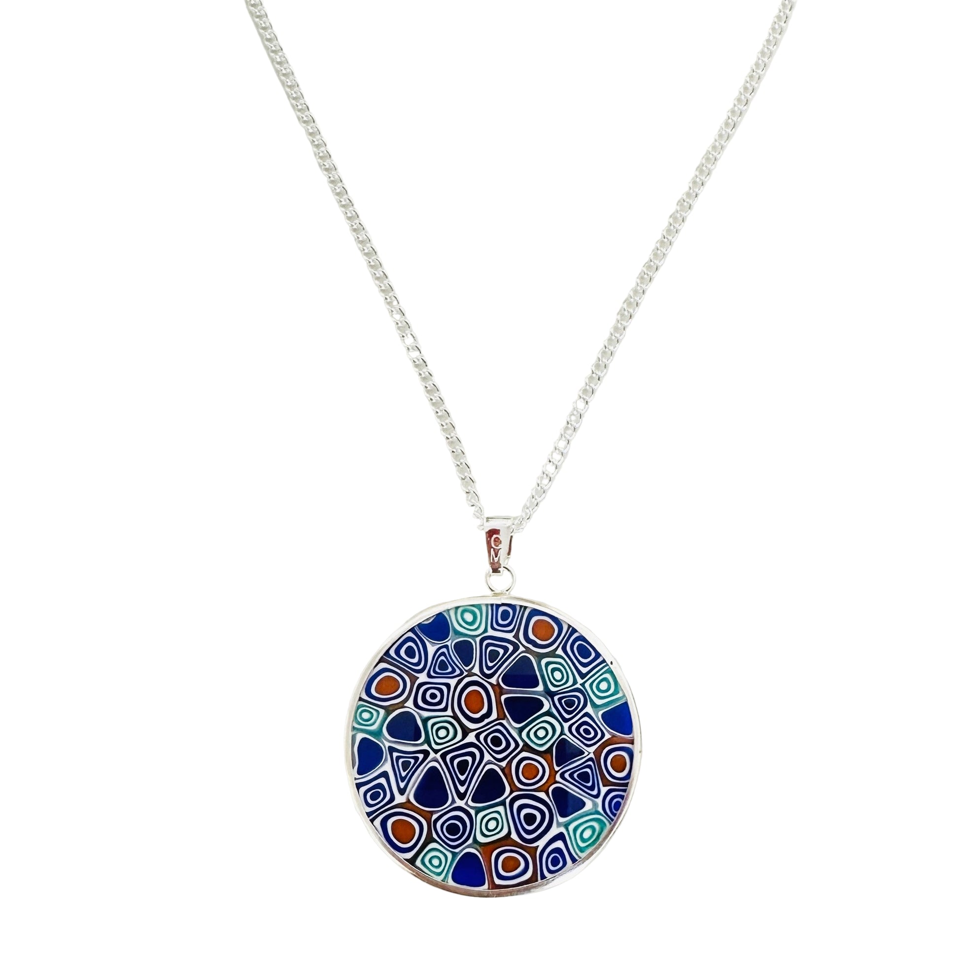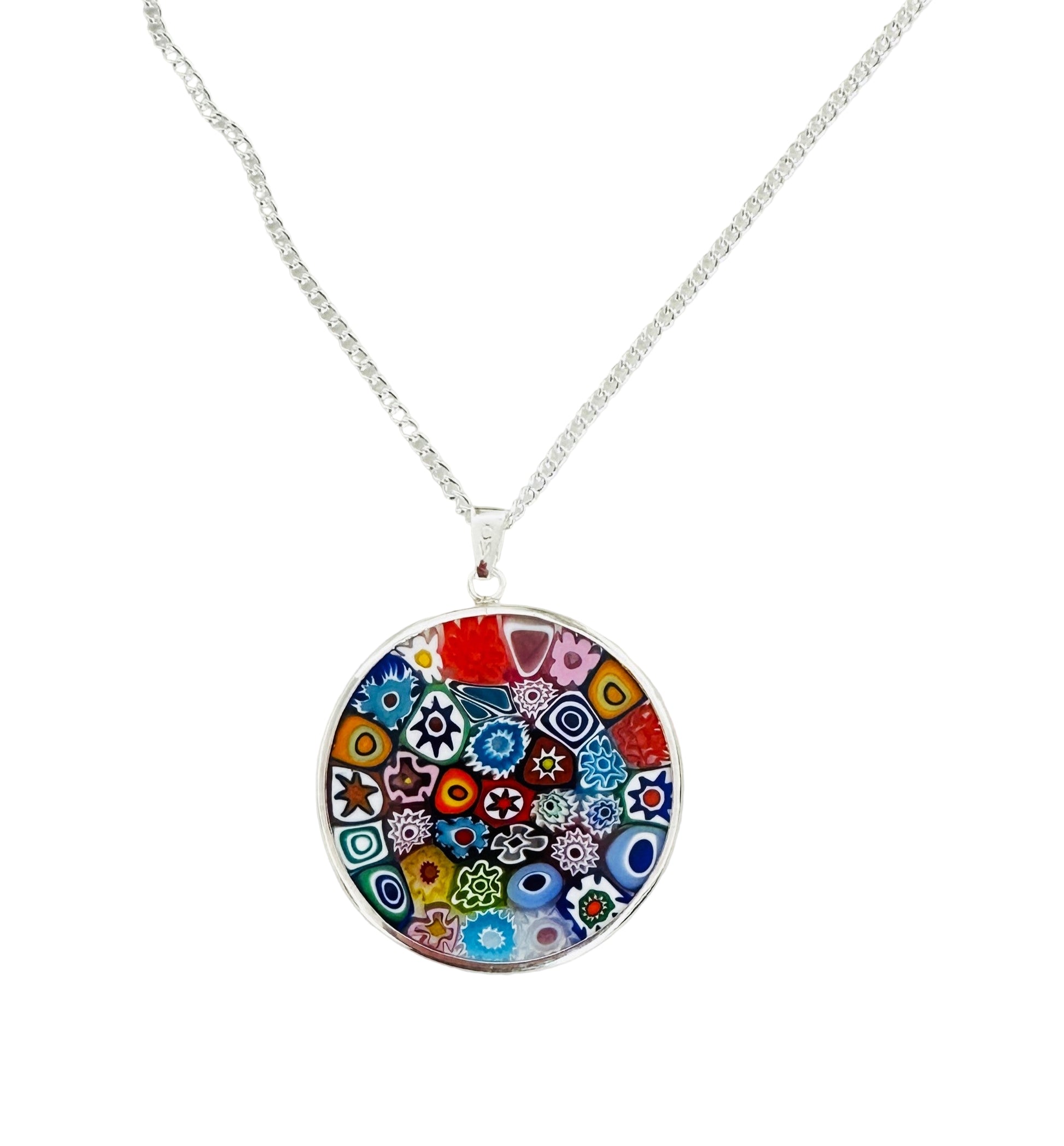 Quintessential Murano fused millefiori pendant finished in sterling silver