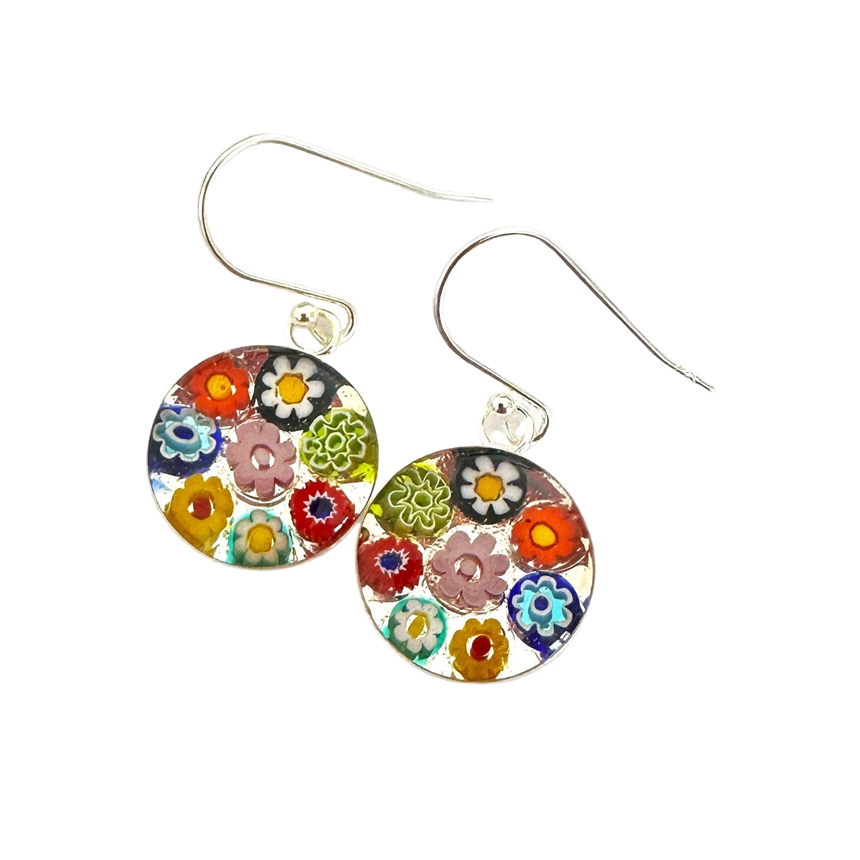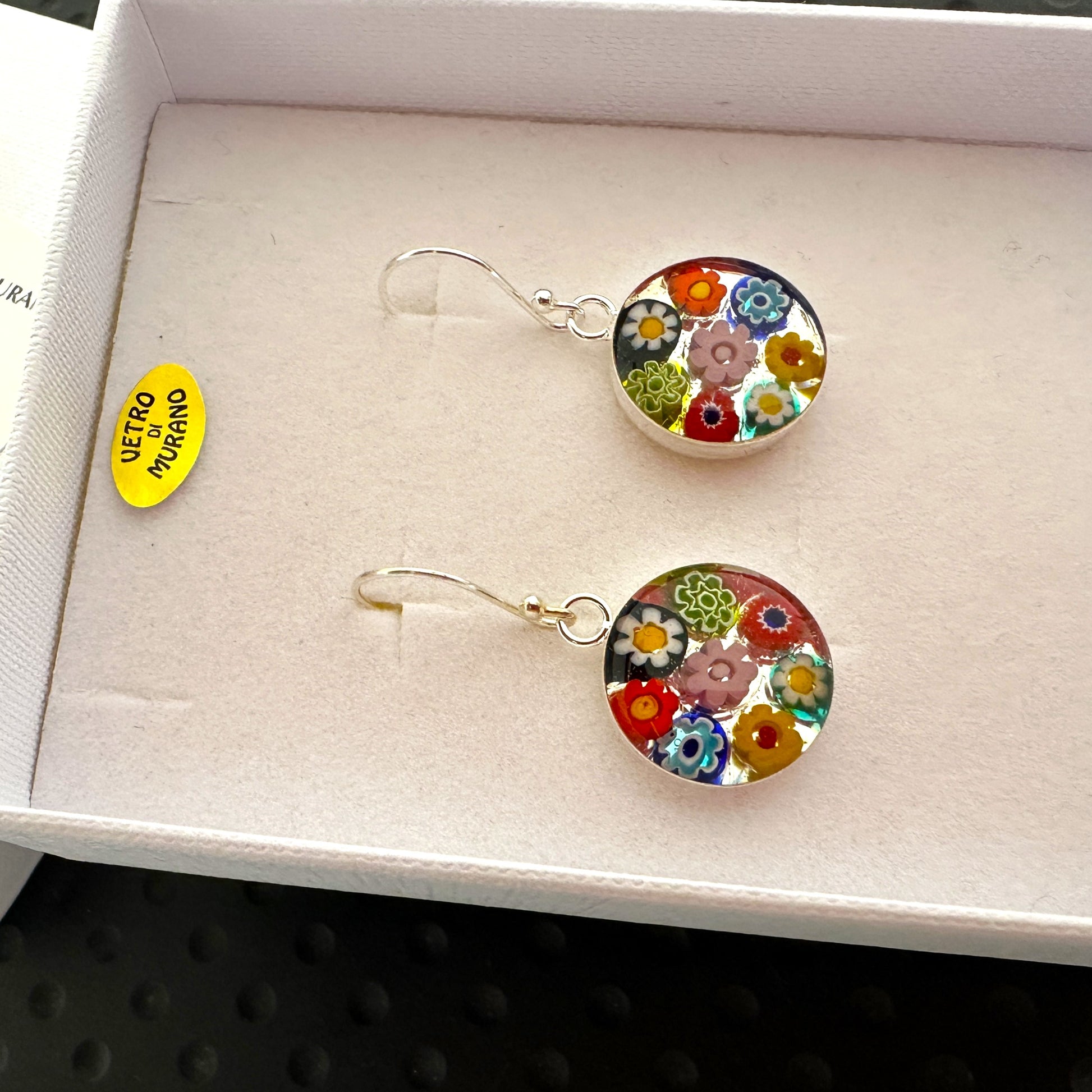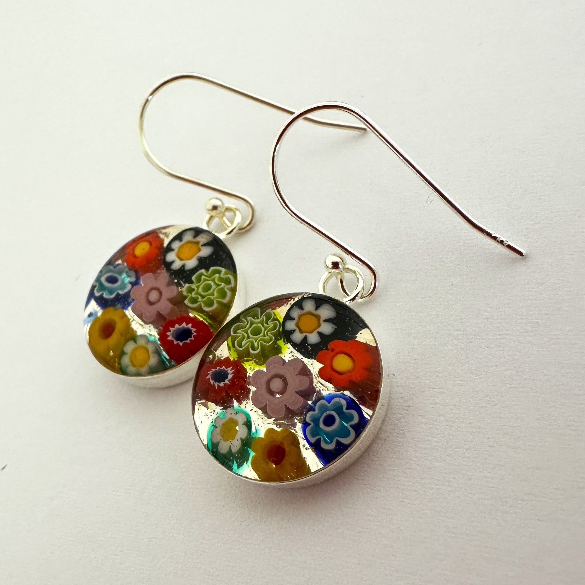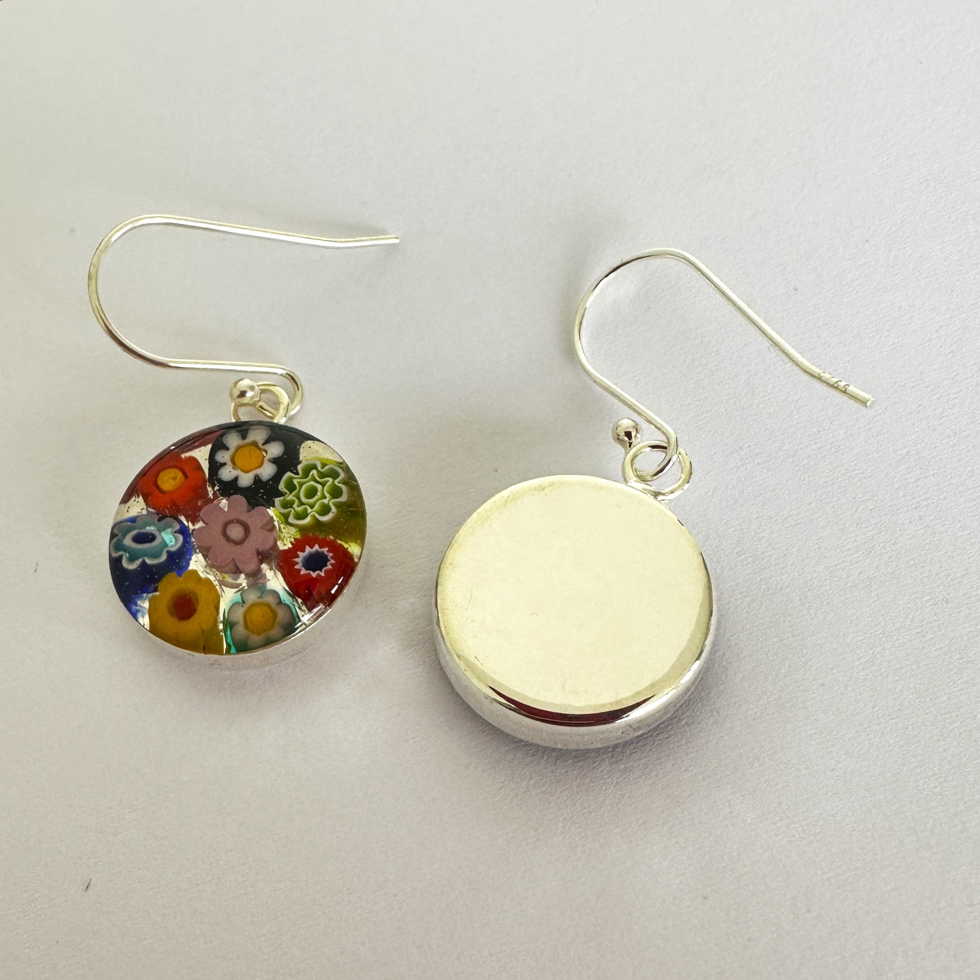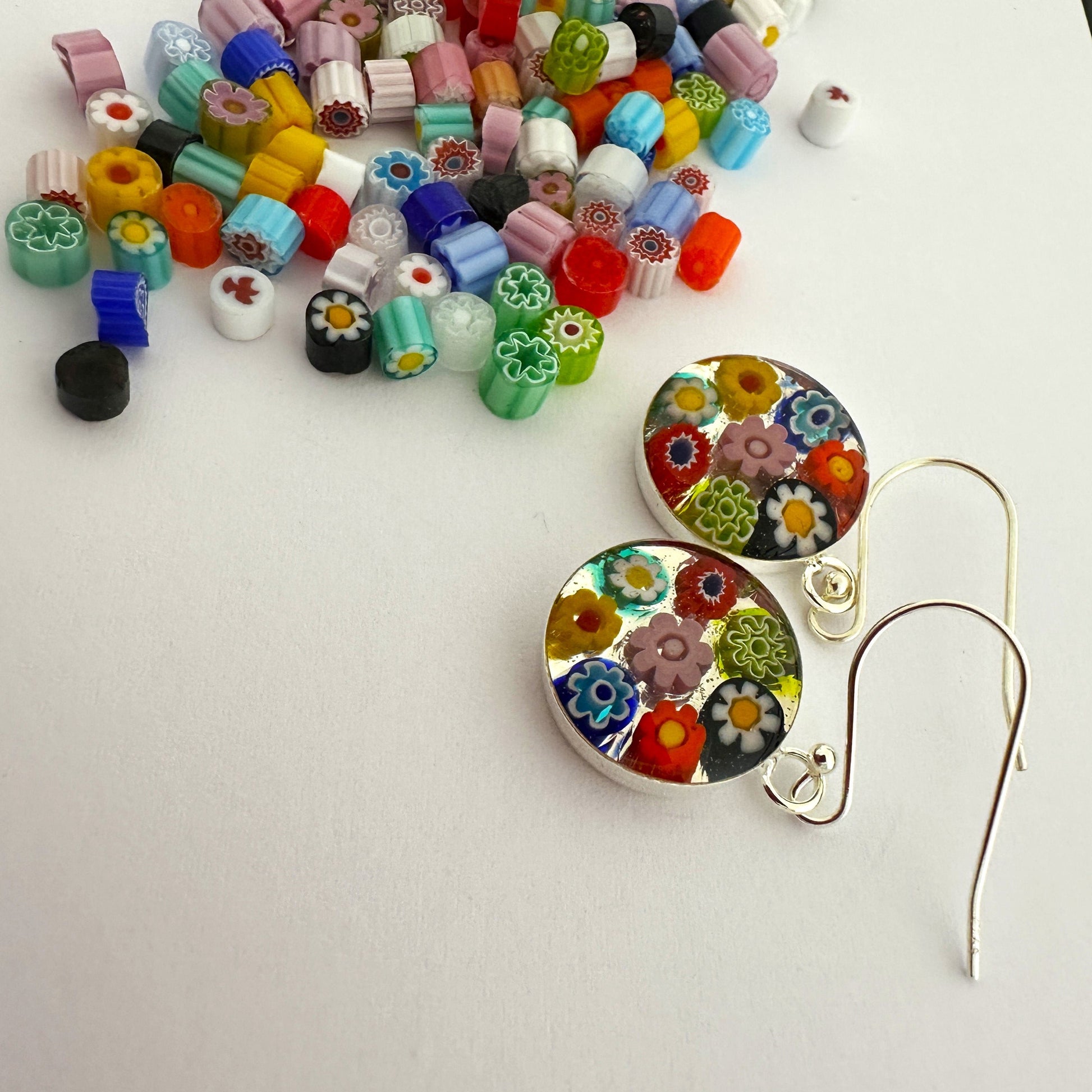 These earrings are made by Tania FitzGerald in her Melbourne studio with millefiori from Murano and high quality resin.