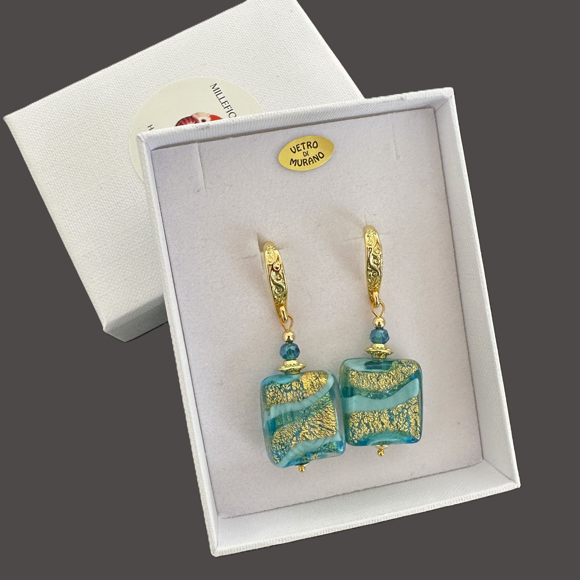 - Made with silver or gold foil under Murano glass